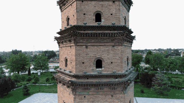 七层六角楼阁式砖塔,镇国塔,与望京楼遥相呼应。岁月变迁,沧海桑田,清风徐来,塔角风铃依旧叮铛作响。