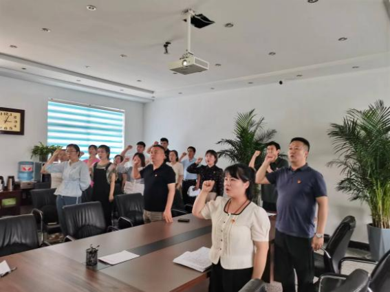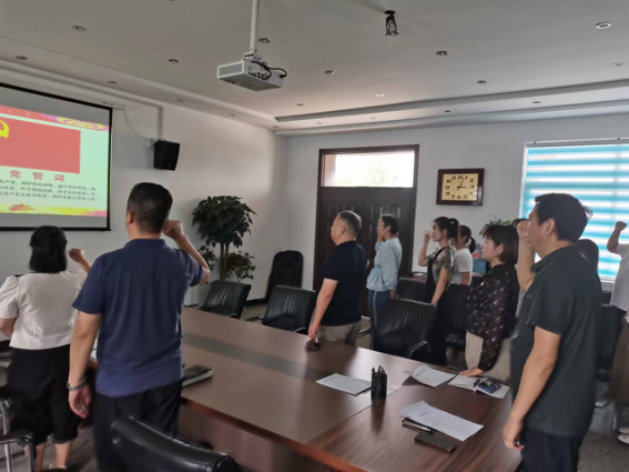 活动开始,在鲜红的党旗下,集团党总支书记赵集睿同志带领全体党员,高举右手庄严宣誓:“我志愿加入中国共产党,拥护党的纲领,遵守党的章程......”。通过重温入党誓词,全体党员表示,再一次加深了作为一名共产党员的使命感和责任感,要更加坚定牢记自己的初心使命,时刻以党员的标准严格要求自己,坚定理想信念,以实际行动践行对党的庄严承诺。
